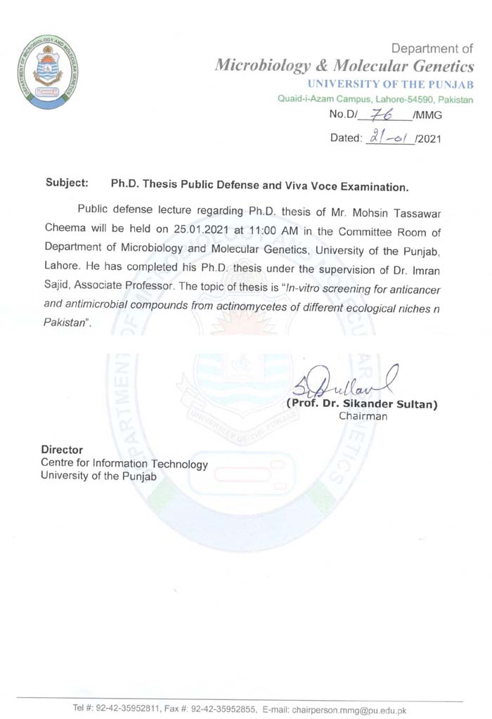 Ph.D. Thesis Public Defense and Viva Voce Examination of Mr. Mohsin Tassawar Cheema Tweet Follow @pu_lhr_official